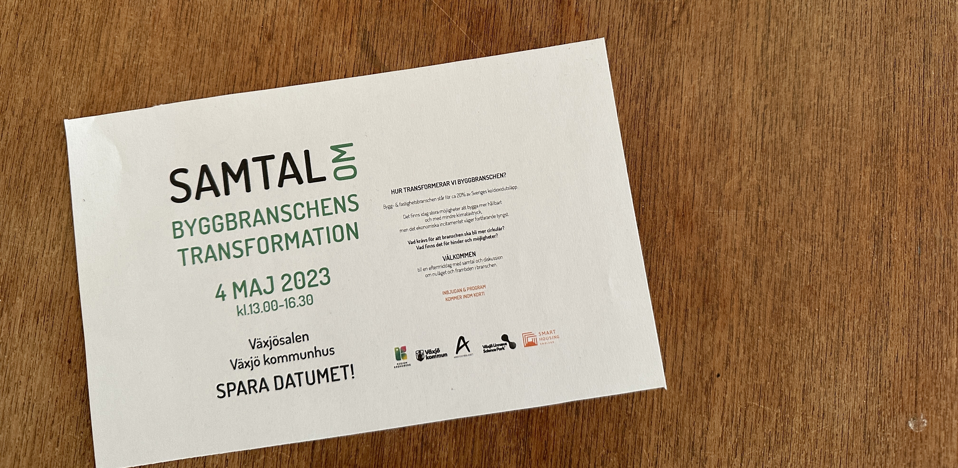 Tillsammans med Växjö kommun, Växjö Linnæus Science Park, Region Kronoberg och Arkitektbolaget anordnar Smart Housing Småland ett seminarium den 4 maj klockan 13.00-16.30 i Växjö kommunhus på temat: ”Hur transformerar vi byggbranschen?”